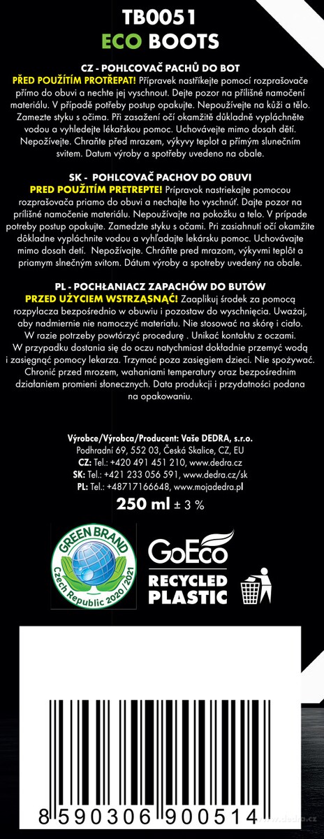 A 1+1 INGYENES EKO cipőszag semlegesítő ECO BOOTS SPRAY 250 + 100 ml.