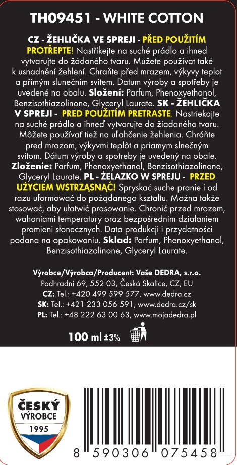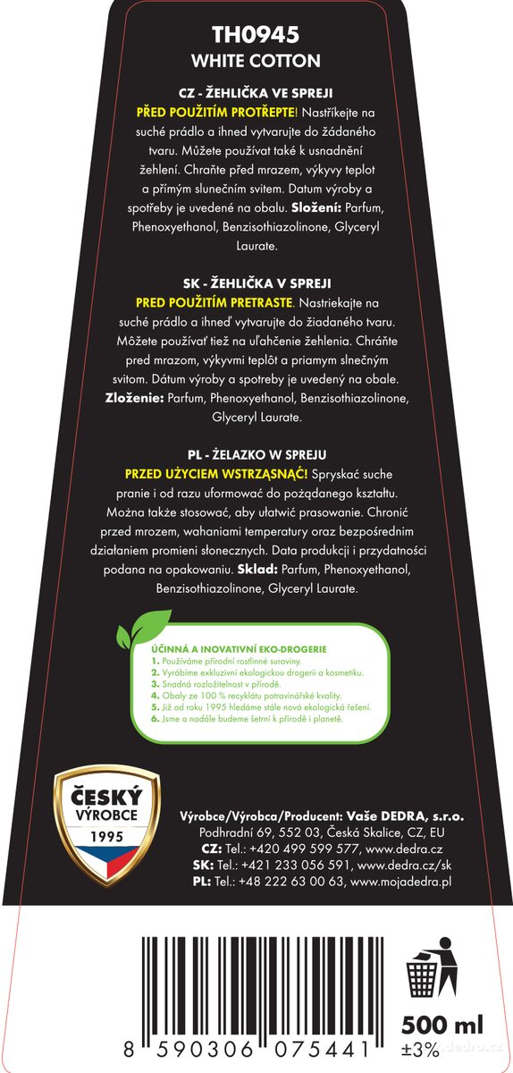 EKO ÖSSZETÉTEL! Könnyítsd meg a már amúgy is kellemetlen vasalást! A vasaló spray kiegyenlíti a ruhák gyűrődéseit. Csak fújd rá a ruhára, simítsd el a kezeiddel és hagyd egy kicsit lógva száradni.