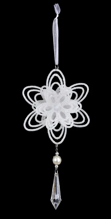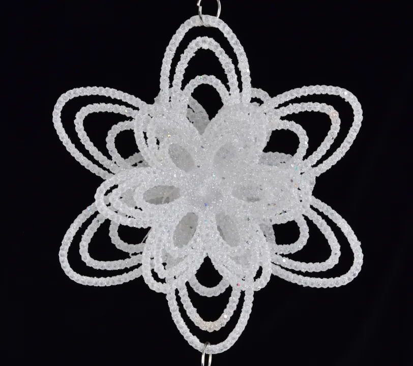 Elegáns 3D dísz TROJITÝ KVĚT kristállyal kiemelkedik a karácsonyfán vagy az ablakban. Finom jéghálók, plasztikus kivitelezés és gyönyörű függő dísz létrehozza a téli mese hatását. Átmérő 12 cm, hossz 22 cm.