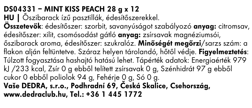 12 db MINT KISS | barackos-mentás üdítő cukormentes pasztillák