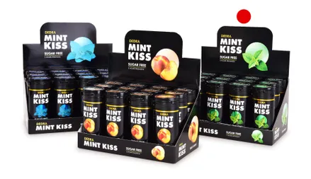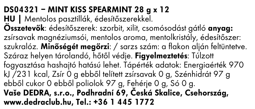12 db cukormentes MINT KISS mentás frissítő pasztilla, spearmint, 28 g x 12.