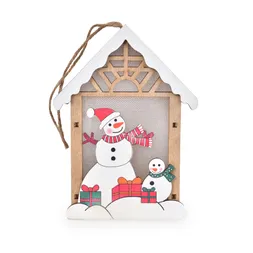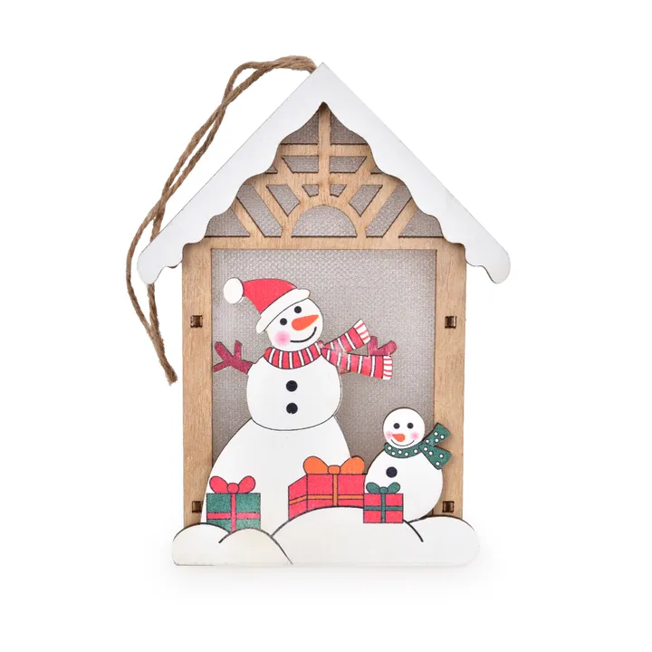 FÉNYLŐ HÓ EMBEREK | fa függőház LED világítással | 14 cm