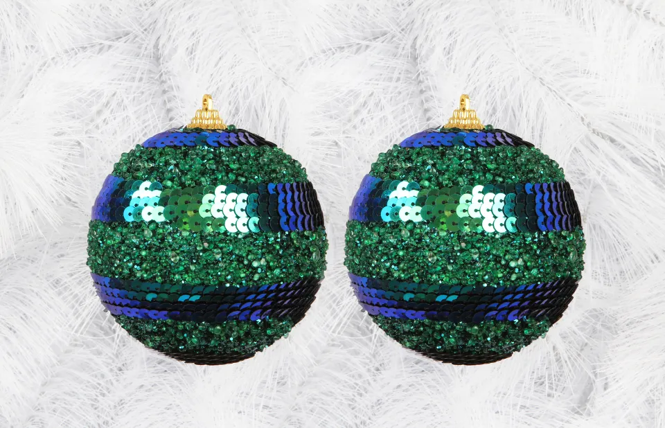 KRISTÁLYGÖMBÖK | dekoratív golyók zafír-smaragd díszítéssel | 2 db | Ø 8,5 cm