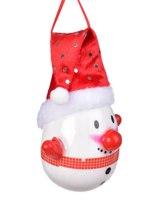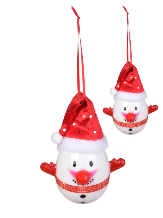 Hóemberek, mint a tojások? Persze! Egy 2 darabos vidám XXL hóember szett piros sapkával és sállal szórakoztatja a kicsiket és nagyokat egyaránt. Eredeti műanyag díszek, amelyeket a karácsonyfán nehéz észrevenni. Magasság cca 14 cm, szélesség 11 cm.