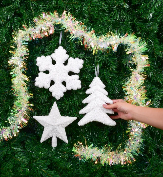 Tedd igazán csillogóvá a karácsonyt ezzel a varázslatos fenyőfa alakú dekorációval, amely finom gyöngyházfényű lamettákkal van megszórva. A fény a felületén ezerszer szóródik szivárványos fényekben, és luxus érzetet kölcsönöz a díszítésnek.