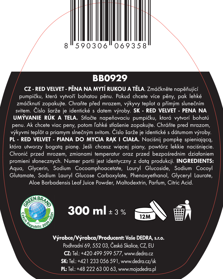 1x Habzó szappan kézre és testre RED VELVET, 300 ml