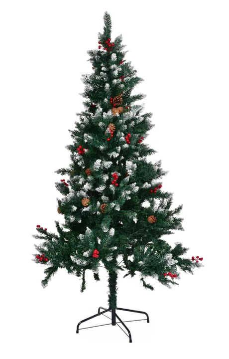 210 cm-es karácsonyfa állvánnyal, FENYŐ FENYŐKONUSSZAL, GALAGONYA ÉS HÓVAL