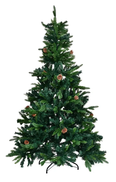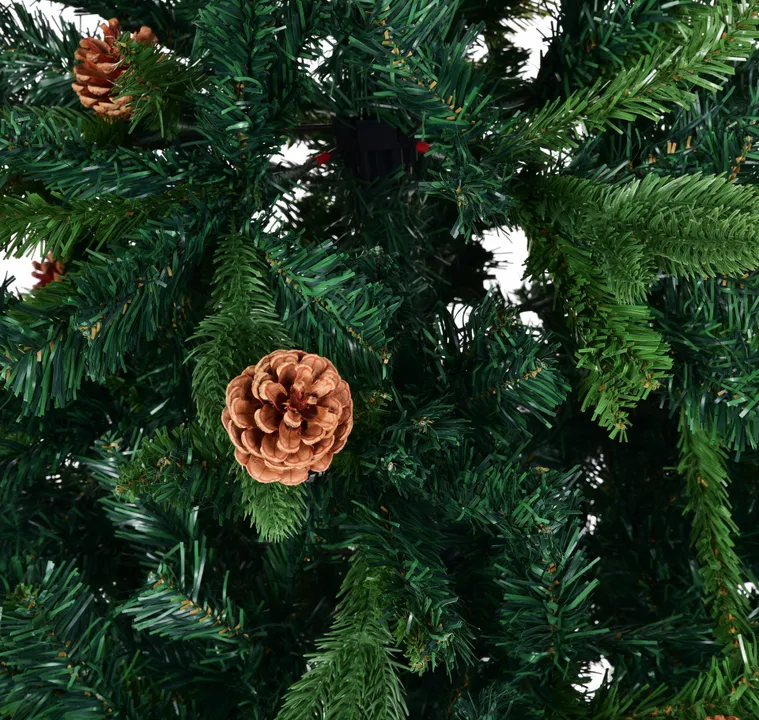 ZÖLD FENYŐ KUPLUNGOKKAL | 210 cm-es műfenyő karácsonyfa állvánnyal | 3D ágak & élethű tobozok