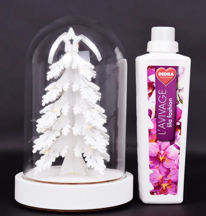 Elegáns LED dekoráció fából készült fával, amely üvegtokba van zárva. Magassága 27 cm, átmérője 17 cm. Meleg fehér fényben világít, 2× AA elemmel működik. Stílusos kiegészítő modern és klasszikus belső terekhez egyaránt.