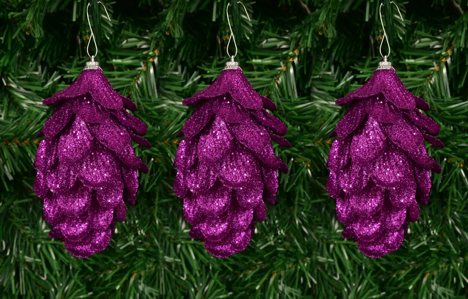 GLITTERCONE | csillogó fukszia tobozok | 3 db | XL dekoráció 13 cm