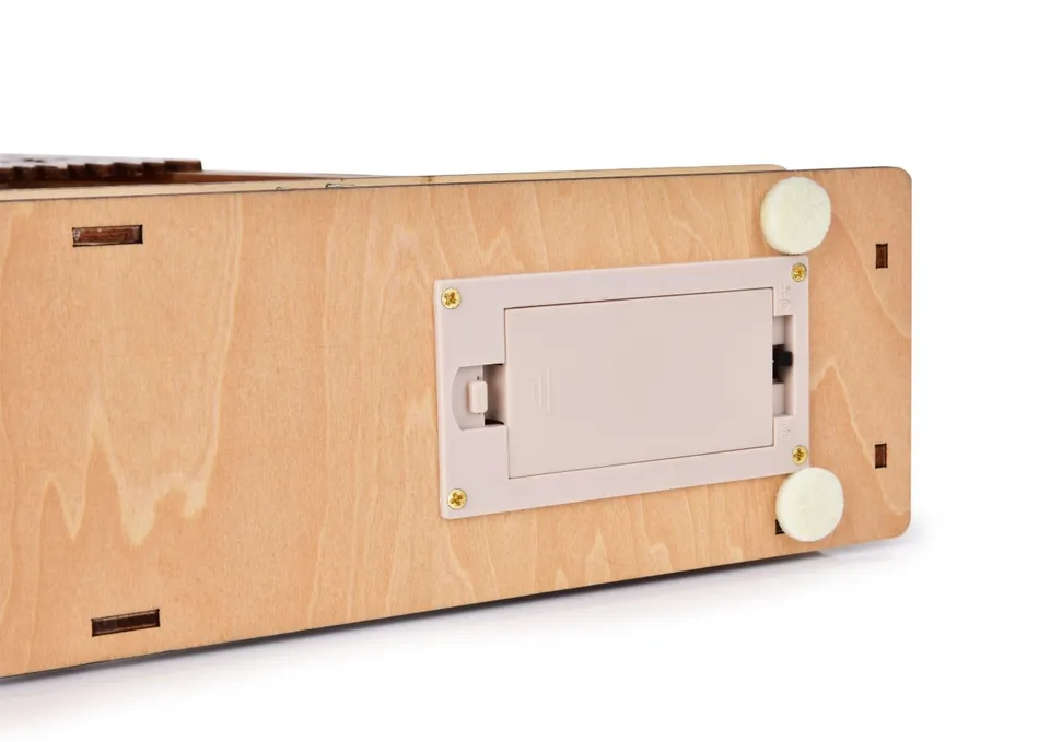 Részletesen kidolgozott fa dekoráció. Méretek: sz 35 x h 8 x m 29,5 cm. Tápellátás 2 db 1,5 V AA elemmel (nem tartozék).