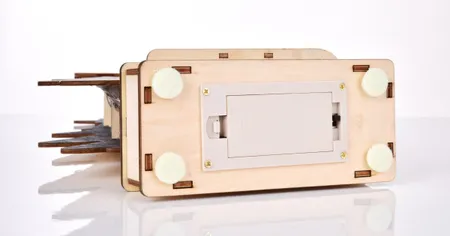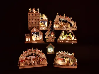 Fa, részletesen kidolgozott dekoráció. Méretek: sz 20 x h 8 x m 40 cm. Tápellátás 2 db 1,5 V AA ceruzaelemmel (nem tartozék).