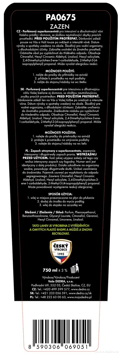 A PARFUMAGE® 750ml 3+1 INGYENES csomag a következő mosó- és takarító parfümöket tartalmazza: