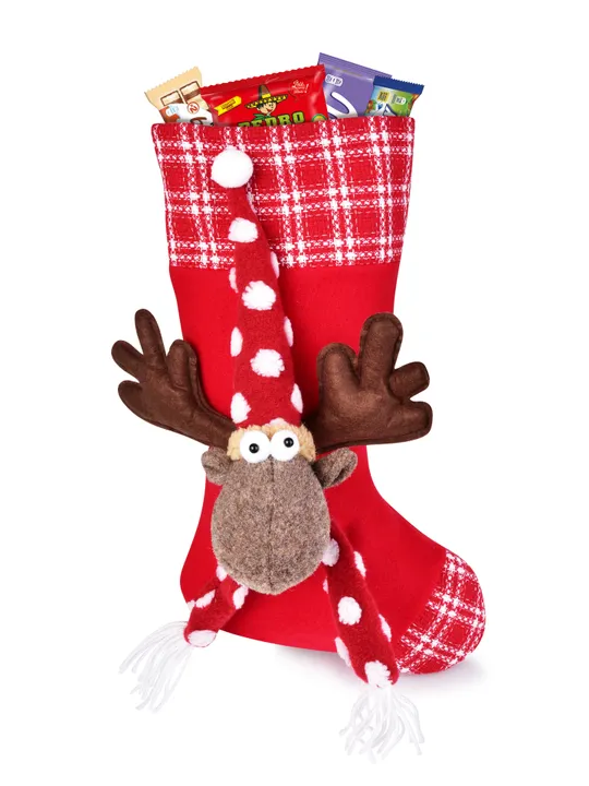 A textil MAXIPUNČOCHA aranyos rénszarvassal ideális Mikulás ajándékozásra. Finom mikroplysből készült, akasztószalaggal, és elegendő hellyel a finomságok számára. Életet lehel a belső térbe, és boldogsággal ragyogja be a gyermekek szemét.