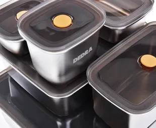 A 4,8 L térfogatú GOURMET rozsdamentes acél tárolóedény átlátszó fedéllel, szilikonos tömítéssel és szeleppel védi az ételt a kipotlástól, levegőtől és nedvességtől. Zárható és elegáns - ideális ebédek, saláták, péksütemények vagy élelmiszerek tárolására otthon vagy utazáskor.