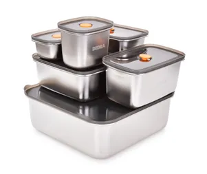- Kényelmes használat: A rozsdamentes acél tárolóedény téglalap alakú, amely megkönnyíti a különböző ételek, például saláták, levesek, húsok, gyümölcsök vagy szendvicsek tárolását. A fedél könnyedén eltávolítható és visszahelyezhető, megkönnyítve a hozzáférést a tárolt ételekhez.