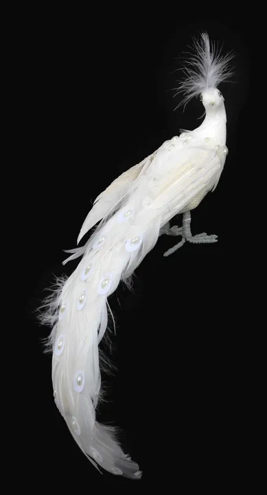 A pávat ülhet egy ágon, polcon vagy a fenyőfa csúcsán. Gazdagon díszítve valódi tollakkal.