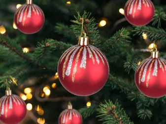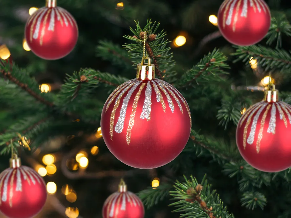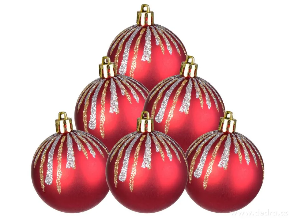 6 db karácsonyi gömb szett piros színben, arany-ezüst csillogó mintákkal, amelyek csillogó nemességet hoznak a fádra. Az elegáns dizájn hangsúlyozza a karácsonyi ünnep hangulatát.
