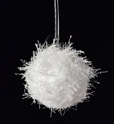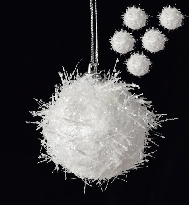 6 luxus fehér gömb szett, rostos szerkezettel és csillámokkal. A frissen hullott hó hatását keltő gömbök minden díszítésnek fenséges hangulatot adnak. Alkalmas karácsonyfára, koszorúkhoz és téli dekorációhoz. Átmérőjük kb. 6 cm.