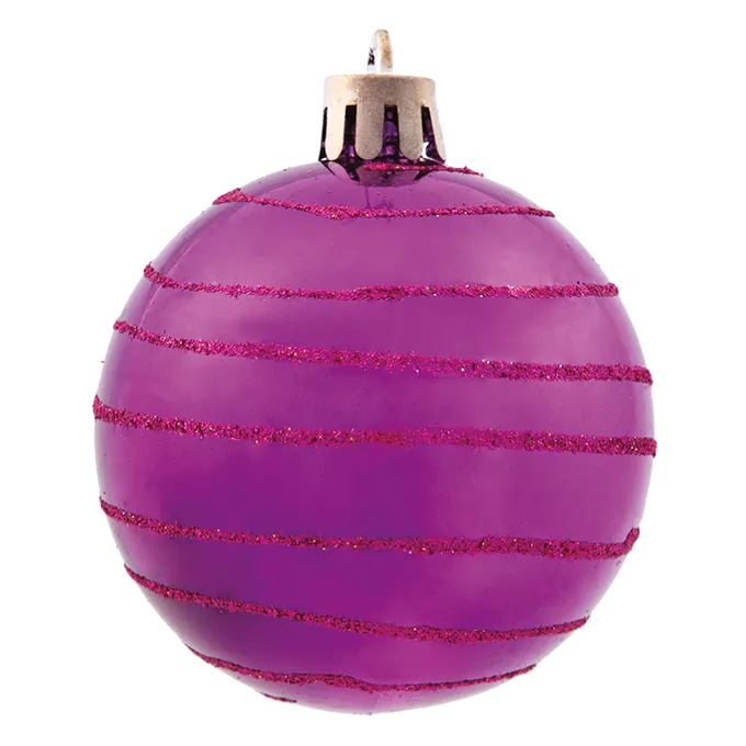 A 6 lenyűgöző lila karácsonyi gömb fémes csillogással, mely csodálatos fényvisszaverődéseket hoz létre. A gömböket finom csillogó spirál díszíti, ami luxus hatást kölcsönöz, de egyben diszkrét is.