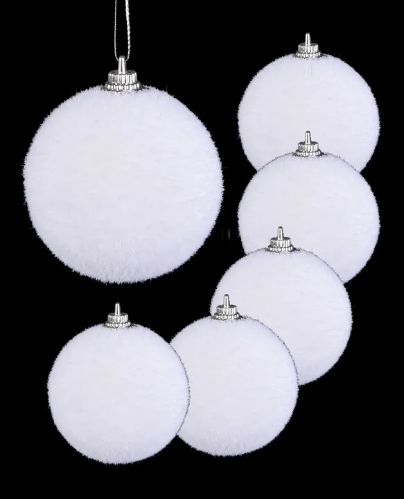 Hozza létre otthon a téli mesét! 6 darab gömb, puha, bársonyos felülettel, amely az odagött havat idézi, minden fáját jégkirálysággá változtatja. Könnyűek, de mégis látványosak – tökéletesek elegáns vagy minimál dekorációkhoz.