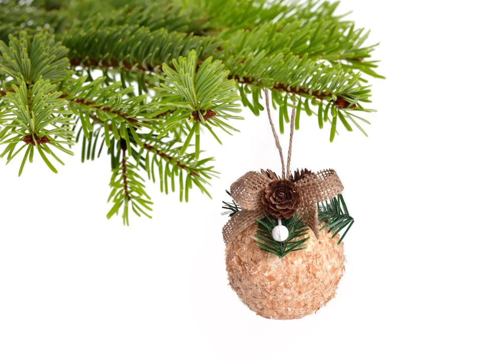 Design: rusztikus karácsonyi gömb díszítéssel.