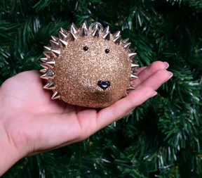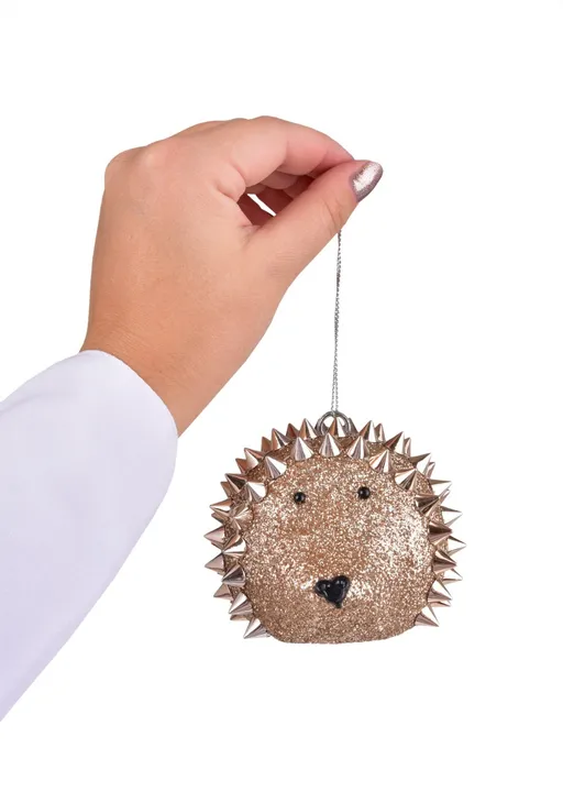 Karácsonyi sün platinában, csillogó tüskékkel, gazdagon díszítve csillámmal. Méretek: szé 8 x mé 8 x ma 6 cm.