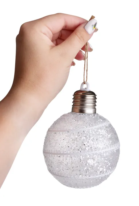 LED gömb csillogó felülettel és fehér peremmel ragyogja be a belső teret lágy fénnyel. Elegáns karácsonyi dekoráció elemmel (tartozék), ideális ablakokba, asztalra vagy ünnepi díszítés kiegészítőjeként. Átmérő 8 cm.