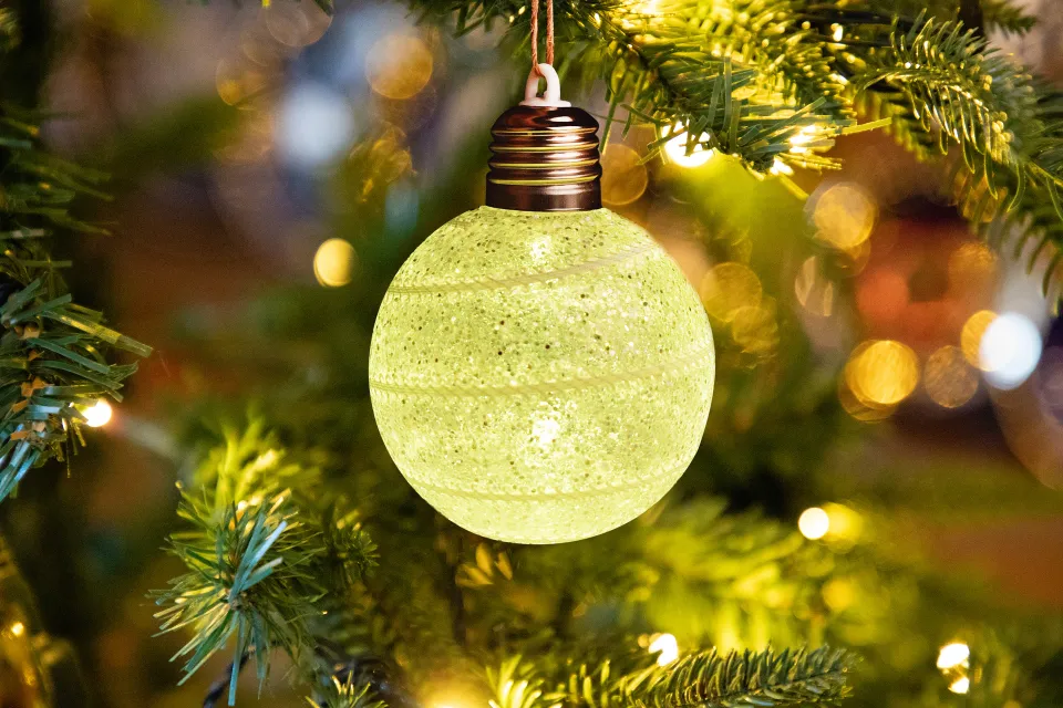 Ragyogja be a karácsonyát lágy csillogással és meleg fénnyel… Ez a FÉNYLŐ LED GÖMB fehér peremmel úgy tűnik, mint egy törékeny jégdísz, amely a sötétben életre kel és betölti otthonát romantikus téli hangulattal. Alkalmas ablakokba, ünnepi asztalon vagy adventi dekoráció részeként. A csillogó felület elkapja a fényt, és a hétköznapi teret mesei sarkokká változtatja.