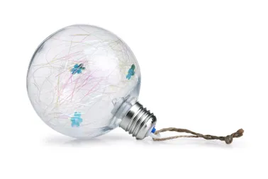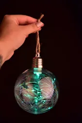 A fénylő XL LED gömb változó színű fényjelzéssel és belső fémes díszítéssel a modern ünnepi világítás varázsát hozza el az enteriőrbe. Átmérője 9,5 cm, tápellátása 3× SR44 (a csomag része).
