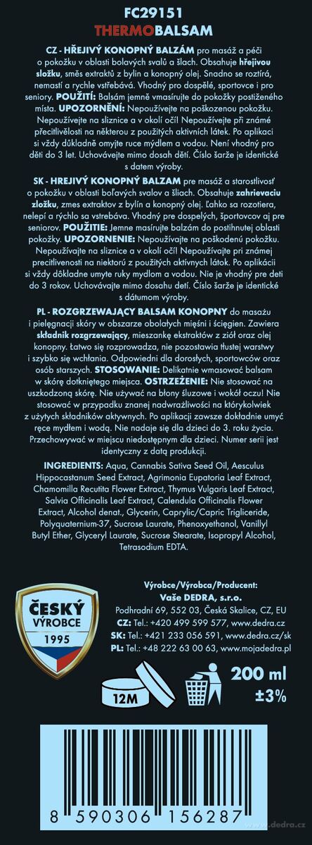 - 1x THERMOBALSAM melegítő kannabisz balzsam gyógynövényekkel izom- és ízületi fáradtság ápolásához, 200 ml