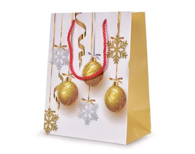 Arany gömbök & pelyhek fehér háttérrel | ajándéktáska M