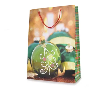 Zöld golyók és ünnepi fény | ajándéktáska L