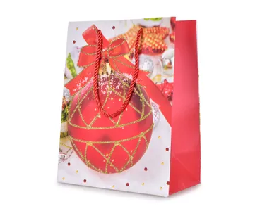 Piros karácsonyi gömb arany masnival | ajándéktáska M