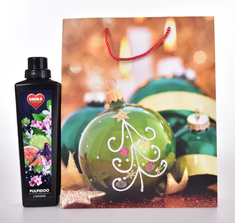 Kényeztesd ajándékaidat egy igazán ünnepi köntösbe. Ez a nagyobb ajándéktáska az arany részletek eleganciáját ötvözi a karácsonyi golyók mély zöld színével, szurom zöld díszítéssel, amely karácsonyfa formájú. A háttérben gyertyák ragyognak, amelyek a otthon melegét és a karácsony varázsát idézik.