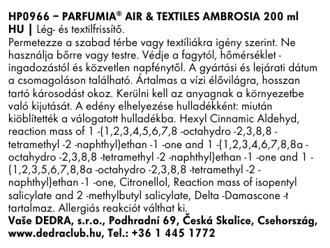 AMBROSIA | Lég- és textilszagtalanító | luxus parfümös spray | 200 ml