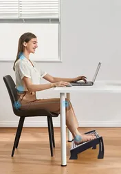 - Kényelem munka vagy pihenés közben: A lábtámasz használata segíthet fenntartani a helyes testtartást, csökkentve az izomfeszültséget, ami hozzájárul az üléssel kapcsolatos általános kényelemhez.