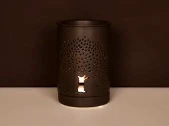 Kerámia aromalámpa ARBORA mély tálcával és finom fa motívummal. Matt fekete máz és átvilágító fény varázslatos, nyugodt légkört teremt. Ajánljuk, hogy kombinálja exkluzív PARFUMIA® viaszokkal és esszenciákkal. Átmérő 9,5 cm, magasság 14,5 cm.