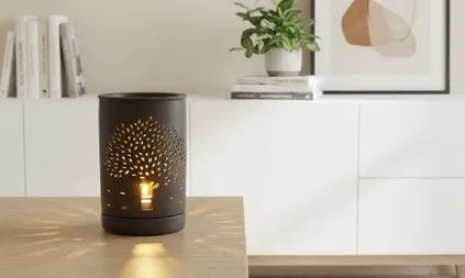 ARBORA | XXL kerámiai aromalámpa fás dekorral | matt fekete elegancia