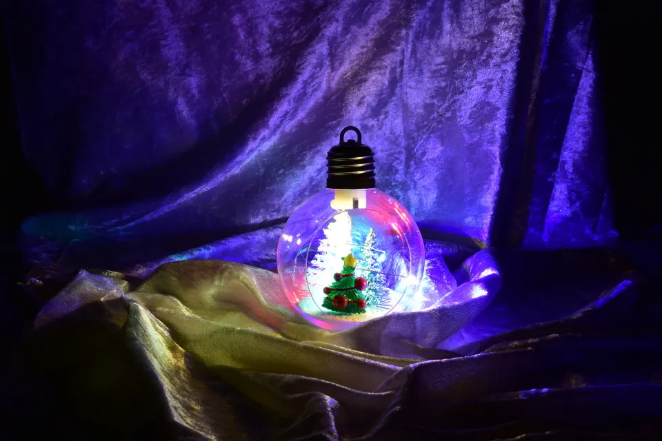 Dekoráció típusa: Átlátszó gömb belső jelenettel és LED világítással