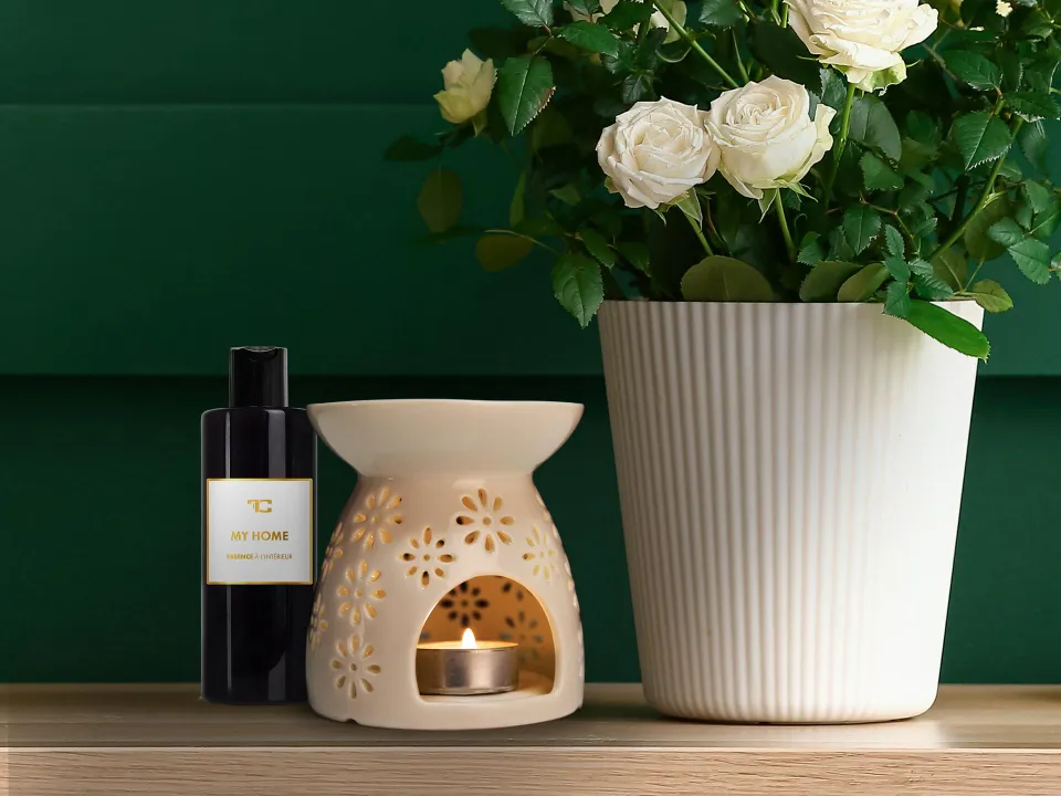 - A parfüm esszencia alkalmas aromás lámpákba, ahol a gyertya segítségével párologtatják az illatos folyadékot az párologtató tálból.