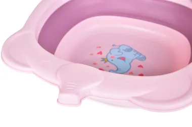 Multifunkcionális összecsukható gyerekmosdó BABY aranyos elefánt mintával. Alkalmas az arc mosására, fürdetésre, hajöblítésre és a gyerekruha mosására. Műanyagból és TPR-ből készült, helytakarékosan könnyen összecsukható. Felfüggesztőnyílás a praktikus tároláshoz.