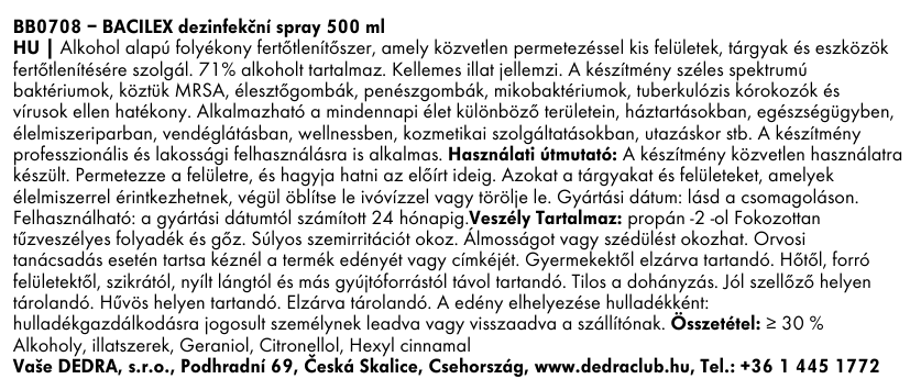 BACILEX | Felületfertőtlenítő spray | 71 % alkoholtartalom | 500 ml