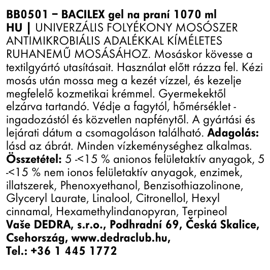 BACILEX | higiéniai mosószer gel antimikrobiális adalékkal | fehér és színes ruhákhoz | 28 mosás