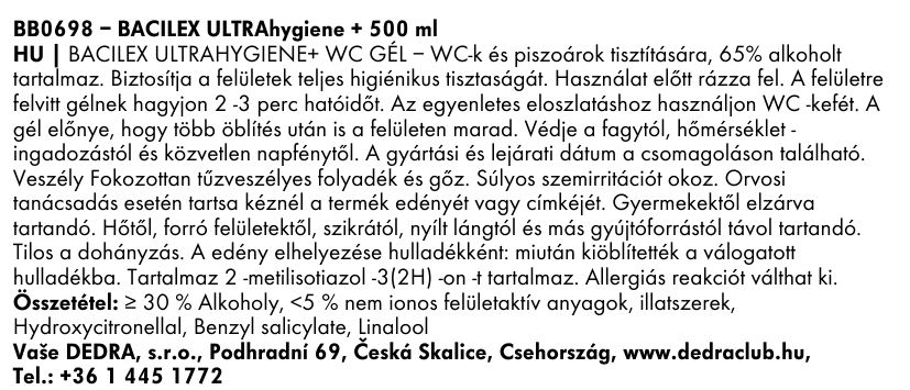 BACILEX | WC gél 65 % alkohollal | higiénikus tisztaság klór nélkül
