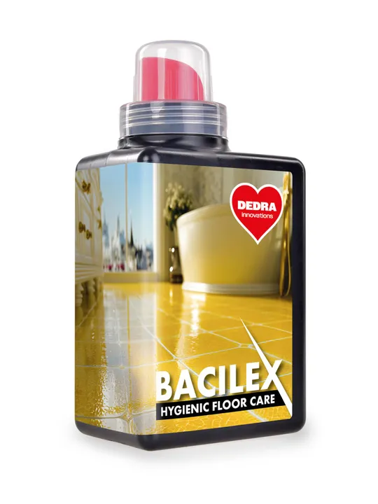 BACILEX HYGIENIC FLOOR CARE egy univerzális koncentrátum padlótisztításhoz 500 ml-es kiszerelésben, friss mangó illattal. Hatékonyan eltávolítja a szennyeződéseket és zsírokat, nem hagy foltokat, biológiailag lebomló összetevőket tartalmaz, és PFAS-mentes. Csempe, laminált, PVC és egyéb mosható felületekhez is alkalmas.