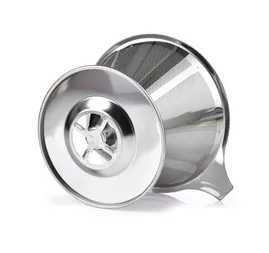 Újrahasználható rozsdamentes acél V60 stílusú dripper a kézi szűrt kávé elkészítéséhez. Az integrált finom szűrő megőrzi a teljes aromát papírszűrők nélkül. Környezetbarát, tartós és stílusos segédeszköz a kávé szerelmeseinek.