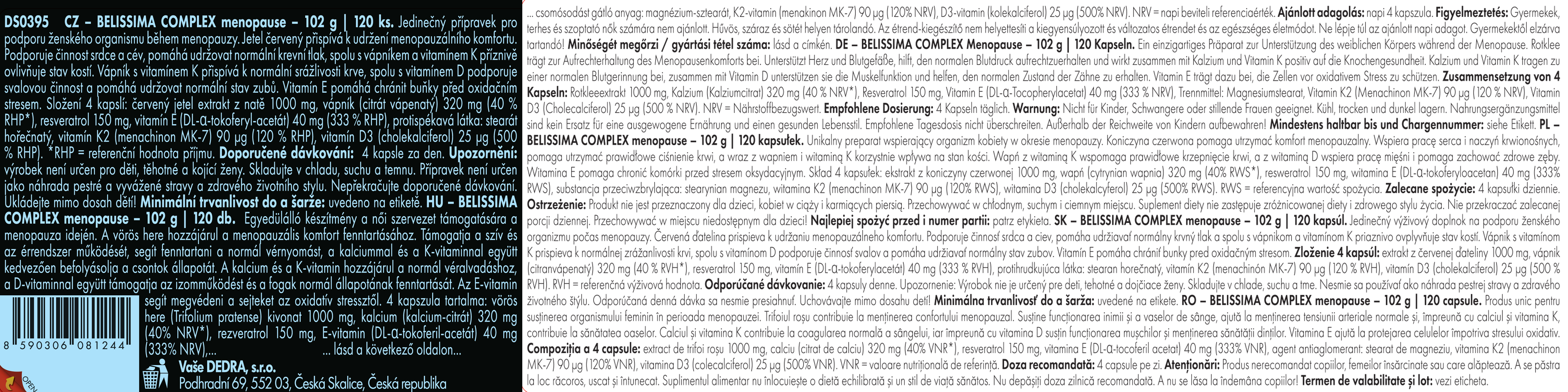 BELISSIMA COMPLEX | menopauza | csontok, szív és menopauzális kényelem támogatása | 120 kapszula | 102,6 g