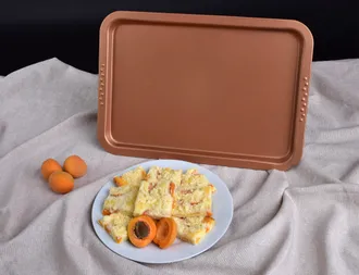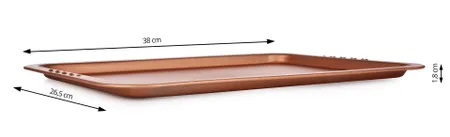 Alacsony tepsi tartós acélból, aranyréz prémium tapadásmentes felülettel BIOPAN® GOLD – ideális mindennapi sütéshez. A felület biztosítja a tökéletes megoldást az ételek kiemelésére, könnyű tisztítást és hosszú élettartamot. Magassága miatt kiválóan alkalmas alacsony sütemények, édességek, piték valamint sült húsok és zöldségek előkészítésére.