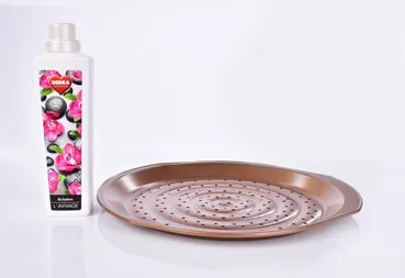 Praktikus, kiváló minőségű acéllemez aranyréz prémium tapadásmentes felülettel BIOPAN® GOLD a fagyasztott pizzák, hasábburgonyák és más fagyasztott finomságok sütéséhez. A perforált alap biztosítja a forró levegő optimális áramlását, így az alsó rész mindig szép ropogós és a teteje puha marad.